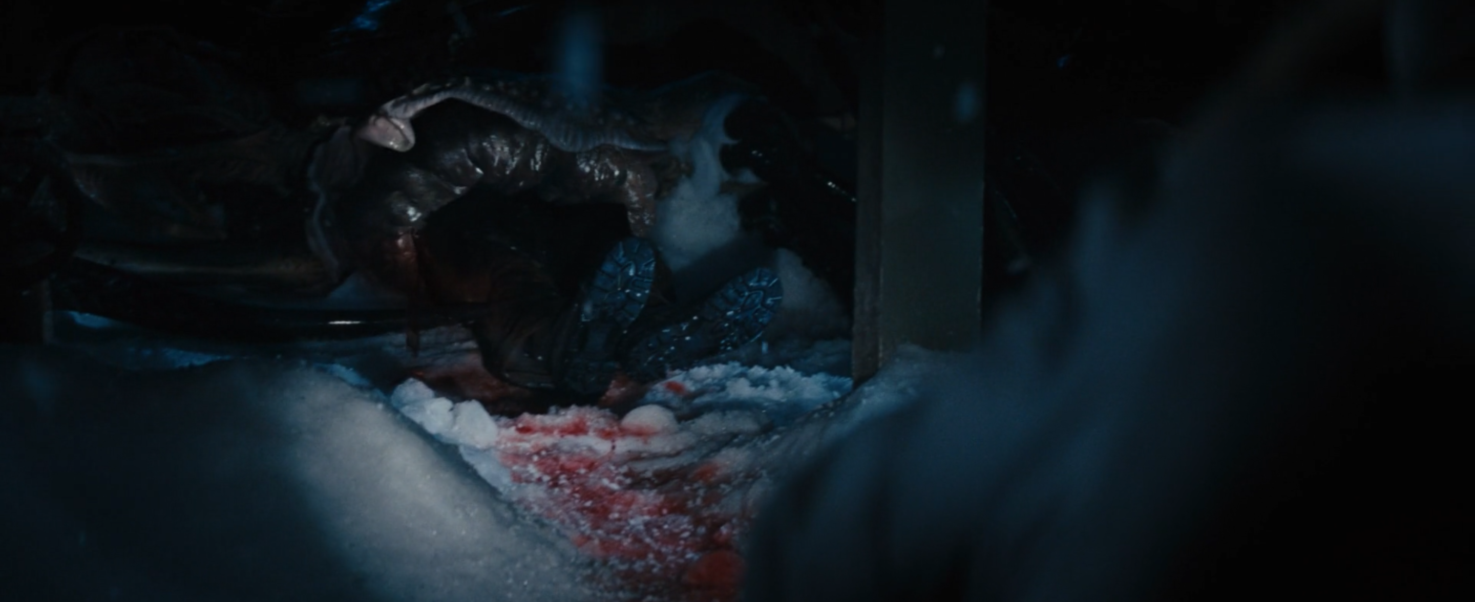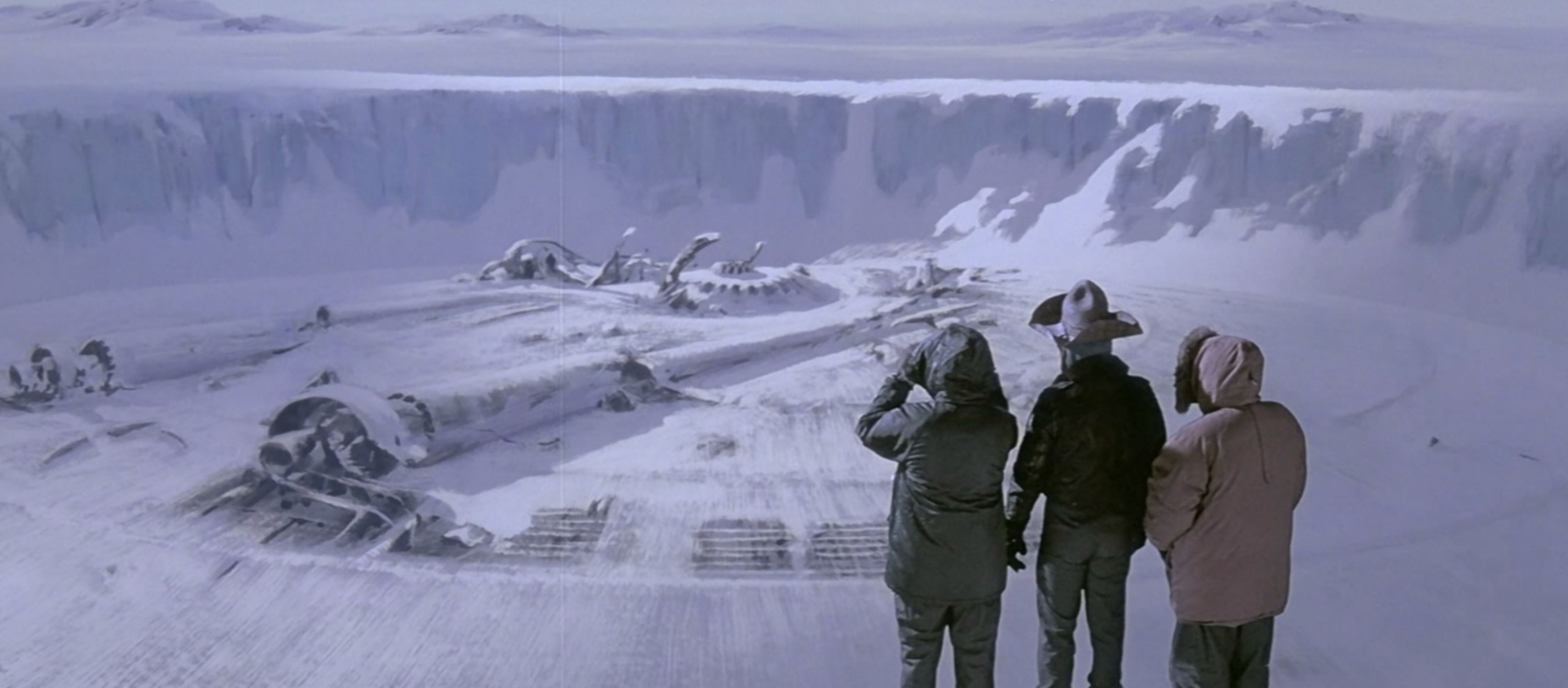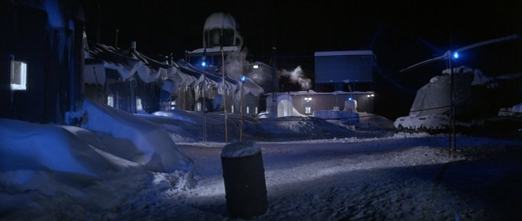 Der erste zu analysierende Aspekt stellt nun also das Setting dar. Dies beschreibt die Orte, an welchem die Handlung stattfindet. Grundlegend kann man feststellen, dass natürlich in allen drei Filmen das grundlegende Setting eine Forschungsstation in der Antarktis ist. Allein aufgrund dieser Tatsache formt sich schon ein erstes, unwohles Bild beim Zuschauer über die Situation der Protagonisten.
